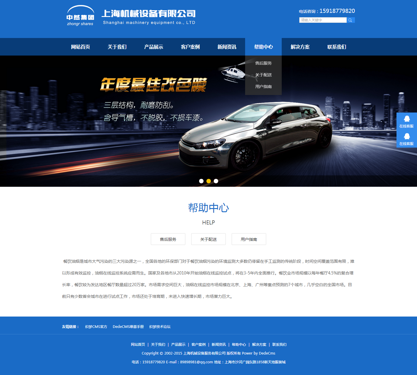 最新版机械设备公司网站模板,附带同步数据手机站、手工书写DIV+CSS,完美兼容IE7+、Firefox、Chrome、360浏览器等主流浏览器;蓝色主流风格、集最新功能手机站开发设计。